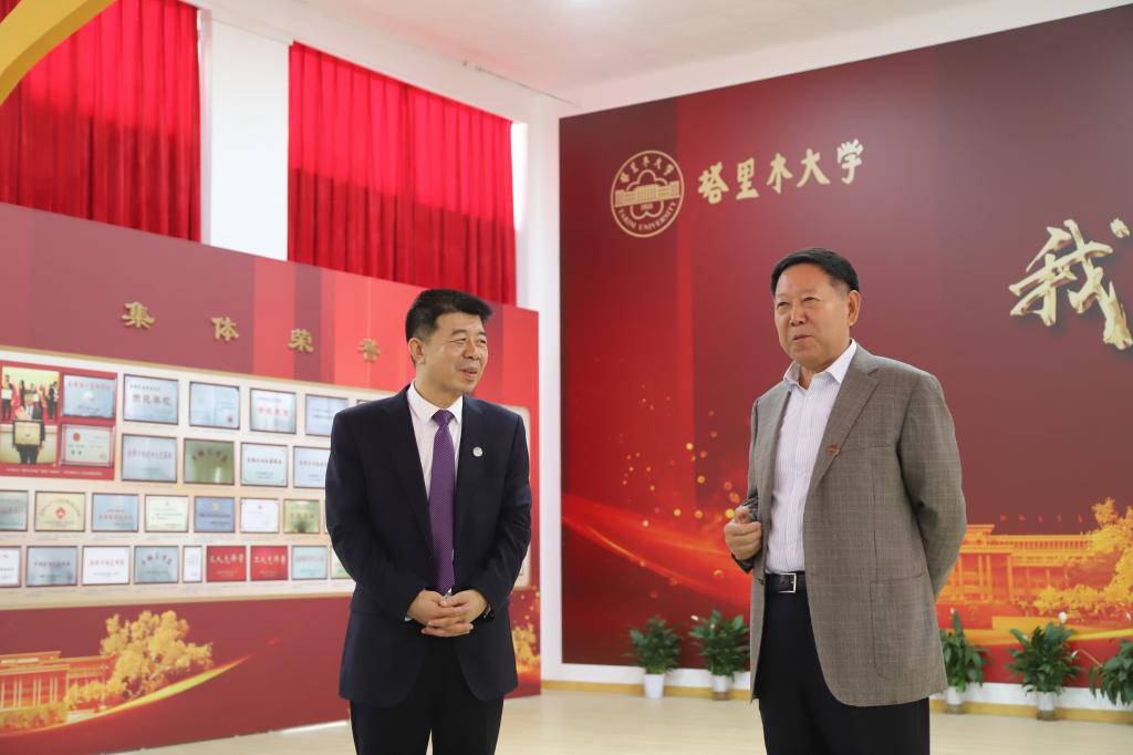 10月4日上午,塔里木大学历任校领导、离退休干部和教师、校友、家属等代表回到母校参加庆祝建校65周年系列活动,在校领导陪同下先后参观了综合教学楼、新时代广场、红色文化广场、校史馆、“我们这五年”主题展览馆、分析测试中心、西区运动场、体育馆、乒羽馆、医学院、机械电气化工程学院、信息工程学院、园艺试验站、南疆现代农业先进技术研究院、新校区(东扩区)、三五九旅屯垦纪念馆、第一师阿拉尔市知青林等建设情况,并参加庆祝塔里木大学建校65周年文艺演出“我是一棵胡杨”、庆祝塔里木大学建校65周年暨推进兵团特点、南疆特色一流大学建设大会等系列活动。