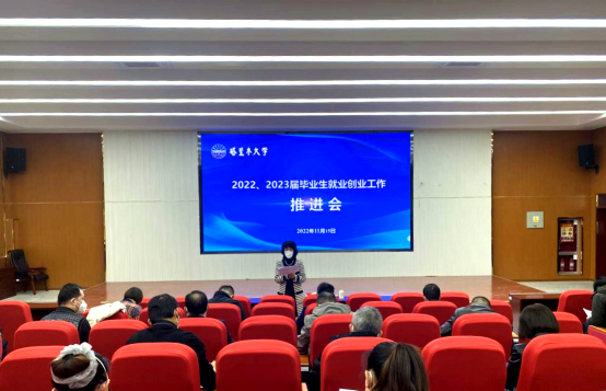 会上还通报了2022届、2023届毕业生就业进展情况。(文/孔黎 刘锋锋 摄/宣传部 招就处)