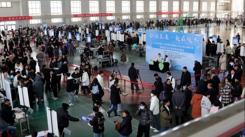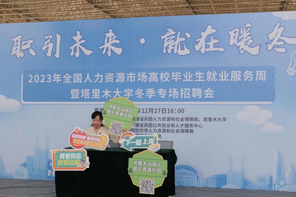 12月27日下午,2023年全国人力资源市场高校毕业生就业服务周暨塔里木大学冬季专场招聘会在风雨操场举办。
