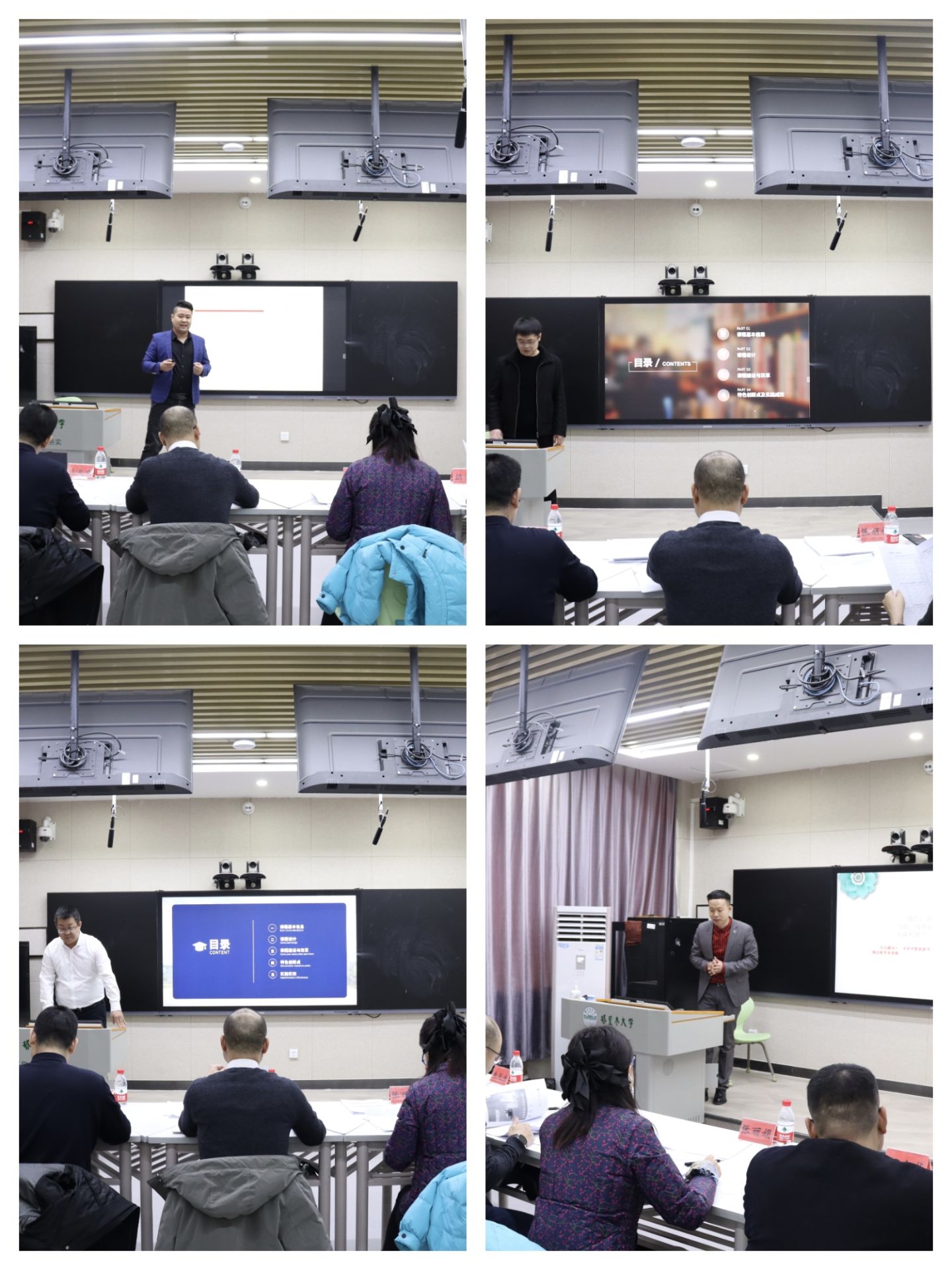参赛选手通过课程教学情况汇报、教学或指导情景模拟、互动答辩三个环节进行角逐,专家评委根据课程设置和现场比赛进行严格评审,最终石建敏荣获一等奖,李尧利荣获二等奖,汪弘扬、刘阳荣获三等奖。